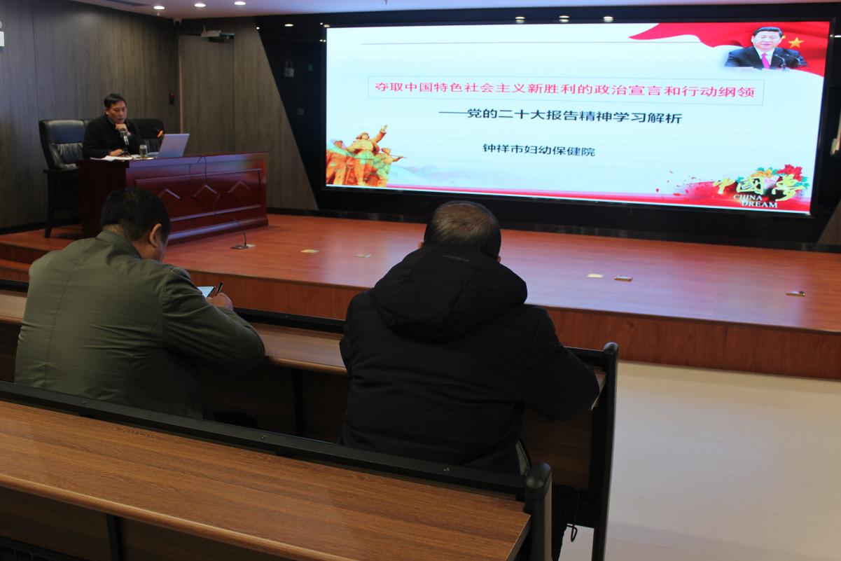为全面深入学习领会党的二十大精神,引导全院党员干部职工把思想和行动统一到党的二十大精神上来,1月30日,市妇幼保健院组织86余名党员及中层干部,开展党的二十大精神宣讲活动。会议由书记李善虎主持宣讲。