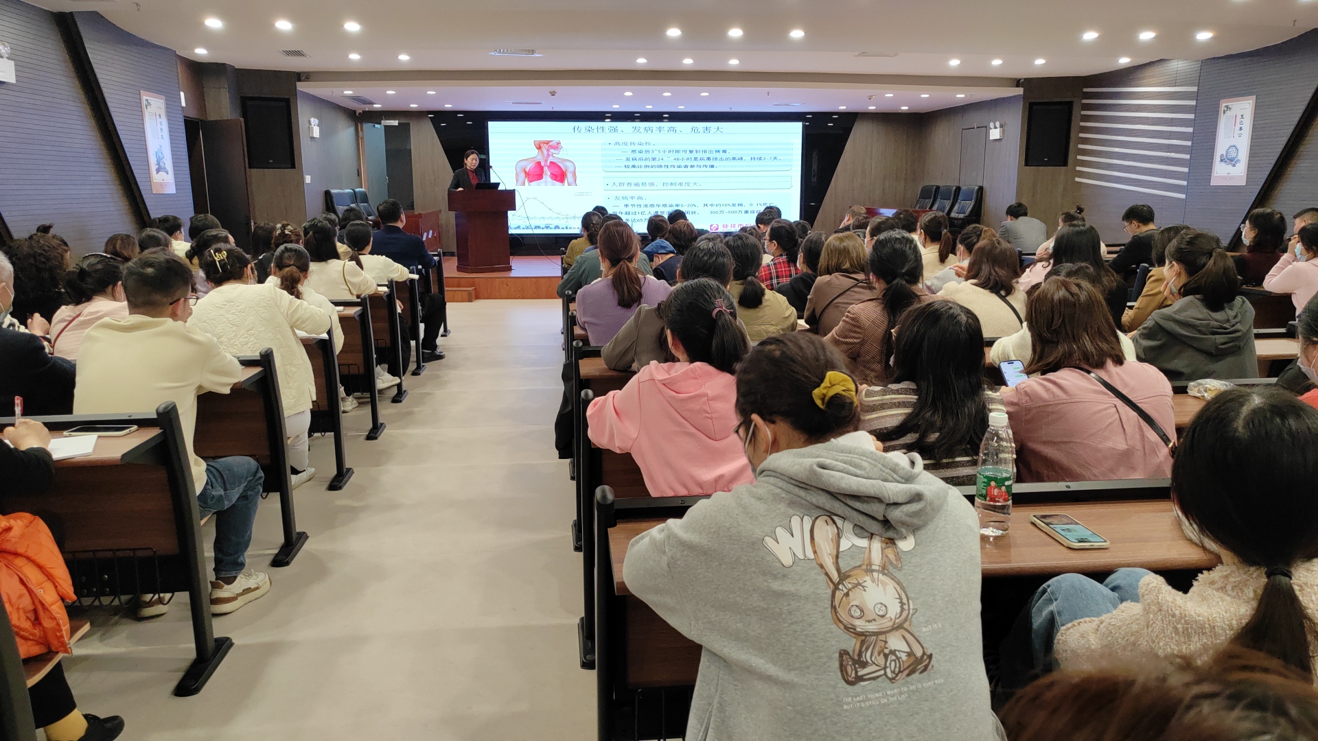 活动中,副院长范涛传达了《钟祥市卫生健康系统干部职工“练兵提能.夜学”方案》;儿童保健部副部长向雪莉及儿科住院部主任孔令莉分别组织学习了“甲流、诺如病毒”等传染病相关知识;院感办副主任王海霞组织学习了医院感染相关知识。