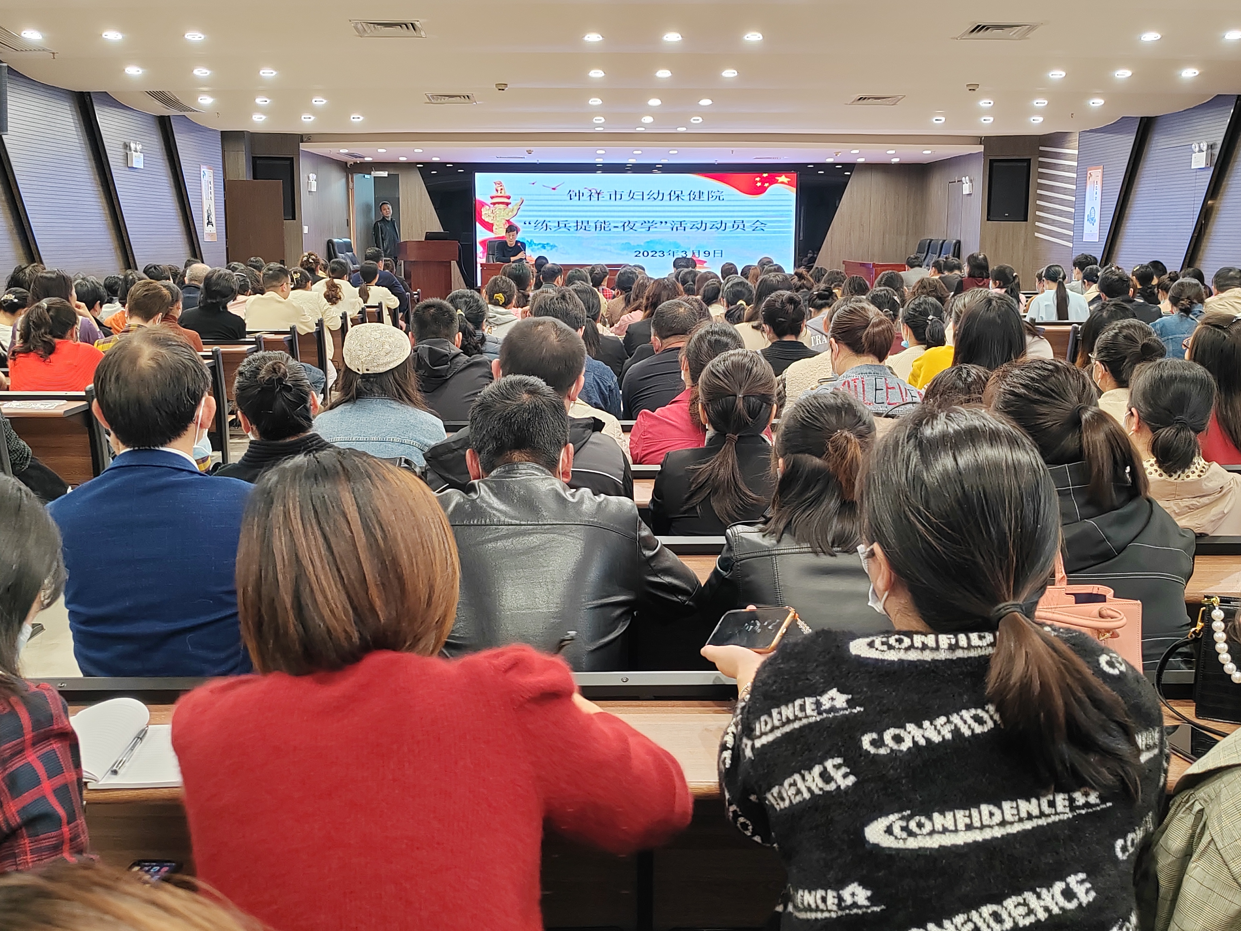 为进一步提高全院干部职工素质,扎实掌握理论知识和操作技术,提升业务能力和服务水平,3月10日晚,钟祥市妇幼保健院组织全院三百多名干部职工在九楼会议室集中开展“练兵提能·夜学”活动动员会及第一讲,深入推进“提能力、转作风、抓落实”活动,构建学习型妇幼保健医疗机构。