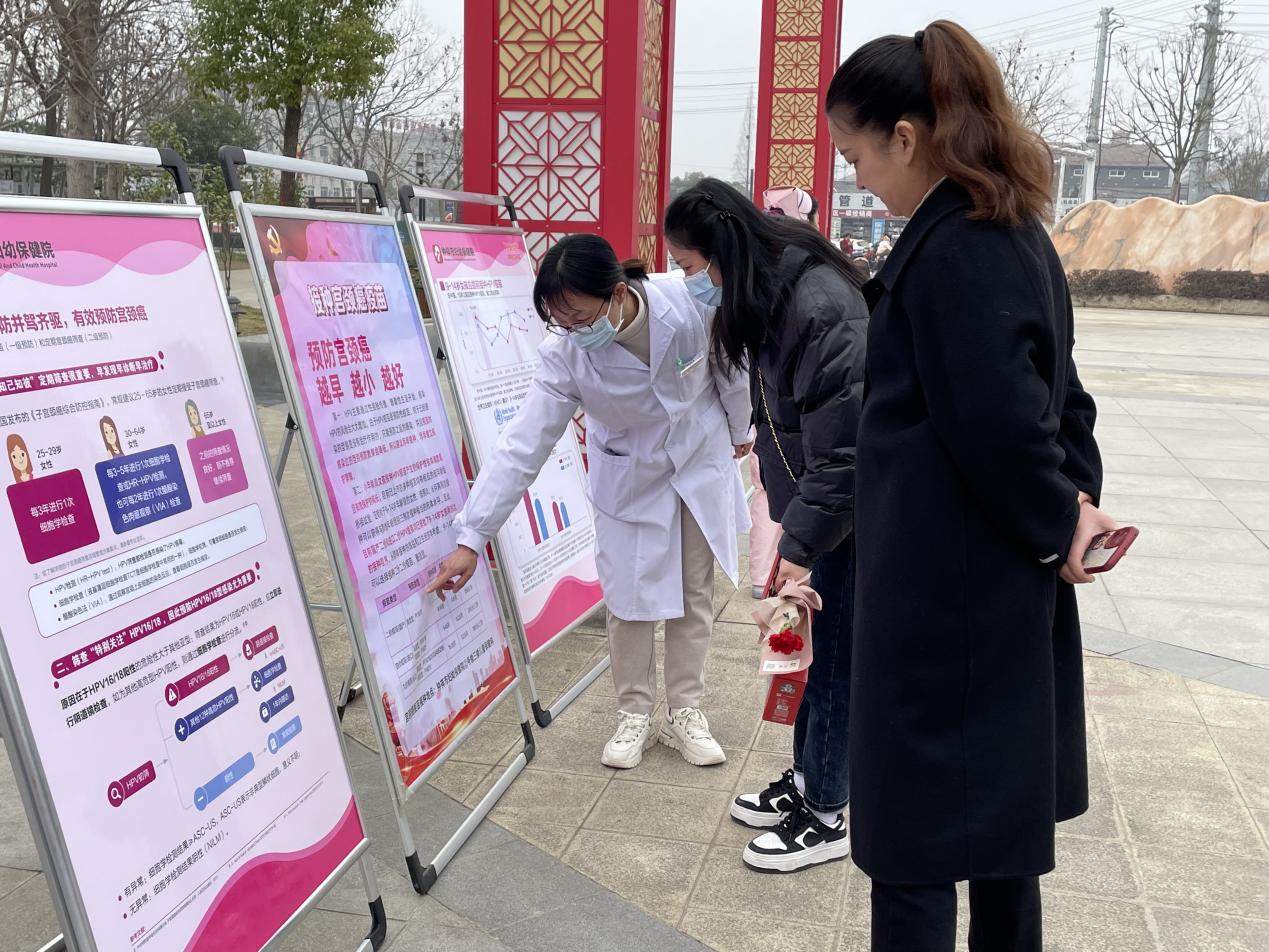 志愿者们向各位女性朋友宣传普及了妇女宫颈癌和乳腺癌检查、免费婚前医学检查、孕前优生健康检查等科普知识。