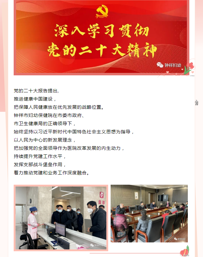 3月2日,钟祥市妇幼保健院通过该院微信公众号及院内工作群,推送出“巾帼心向党 建功新时代”一文,展示出管理、临床、群团组织等女性代表在工作岗位上的魅力与风采。