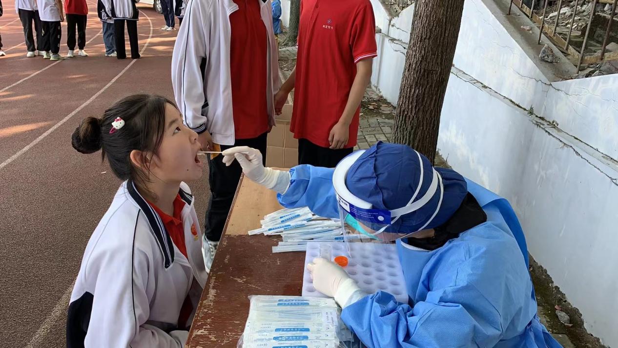 “同学,请张开嘴,啊,好的,已采集完毕。”核酸采集队员一边正确的引导学生,一边迅速的完成咽拭子采集,整个过程,规范熟练,有条不紊。师生全部佩戴口罩,自觉遵守秩序,保持一米间距,采集完成后迅速离开现场。